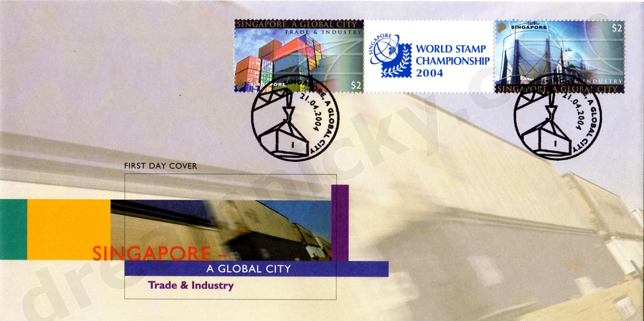 To support the theme of Singapore as a global city and Singapore's hosting of the World Stamp Championship in 2004, 15 renowned companies from Singapore and other countries have been invited to be part of the stamp series for the first time. The companies have been carefully selected based on their impact on Singapore and its lifestyle, their well-known company brand attributes and successes which are recognised and known by people the world over. Each company represents a particular industry in which it has made an impact. Behind the success and brand of each company, there is a story of pride, hard work and determination, a story that mirrors that of Singapore in the past and what it aspires for in the future.