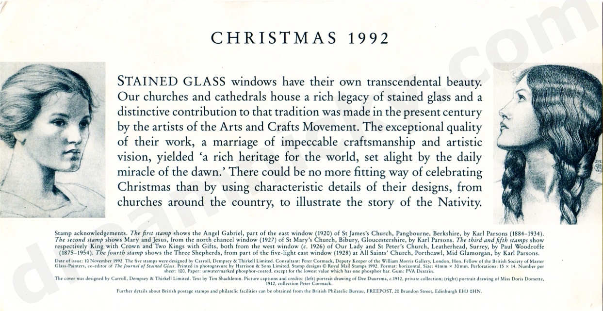 Stamp acknowledgements. The first stamp shows the Angel Gabriel,