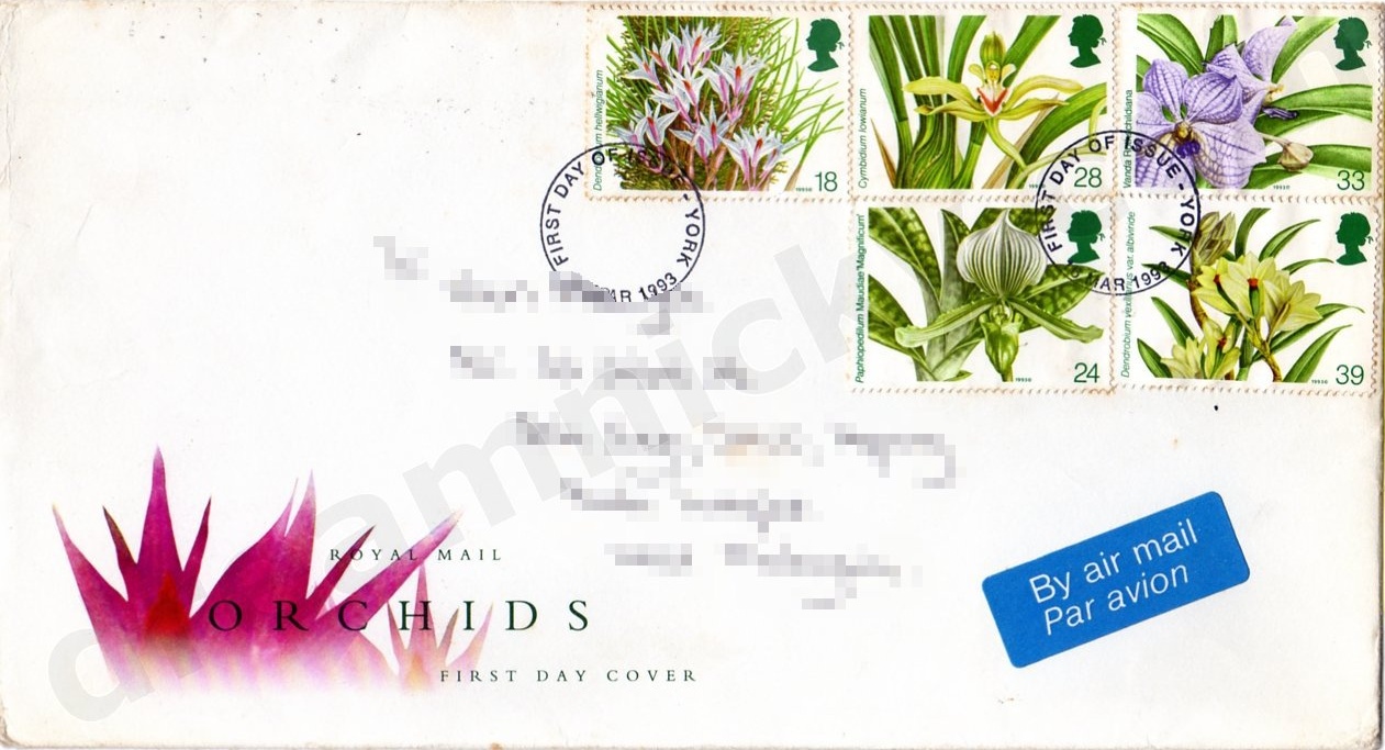 This set of stamps has been issued on the occasion of the fourteenth World Orchid Conference which is being held in Glasgow from 28 April to 2 May 1993. For many, this will be a once-in-a-lifetime opportunity to see such a wealth of orchids displayed under one roof. These fascinating plants unite both amateur and professional in a bond which bridges oceans and politics.